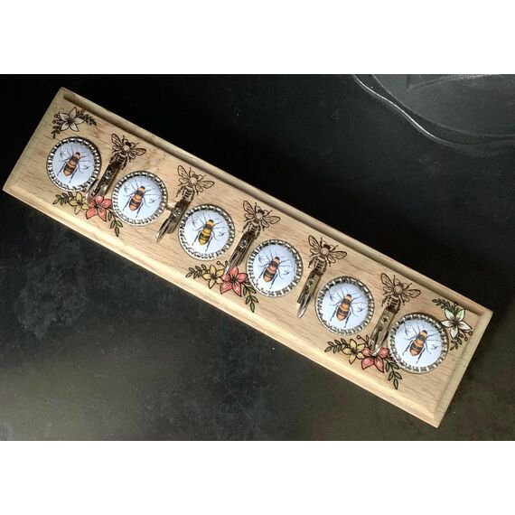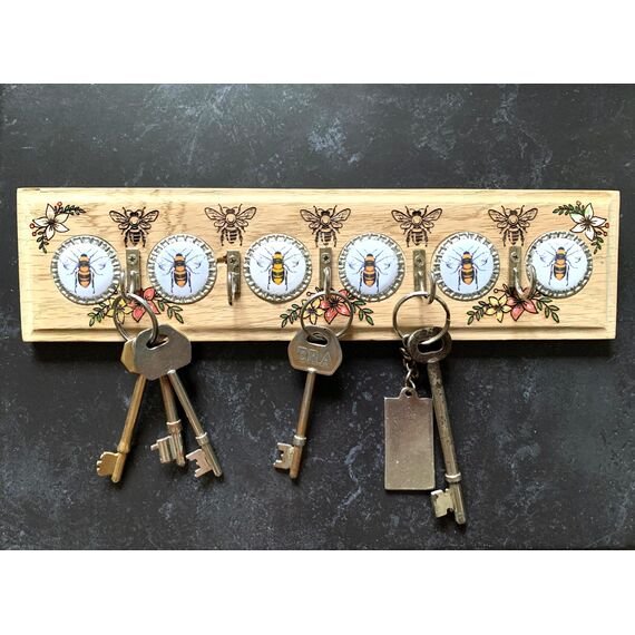 A Handcrafted key holder with Bee design which include hand painted flowers